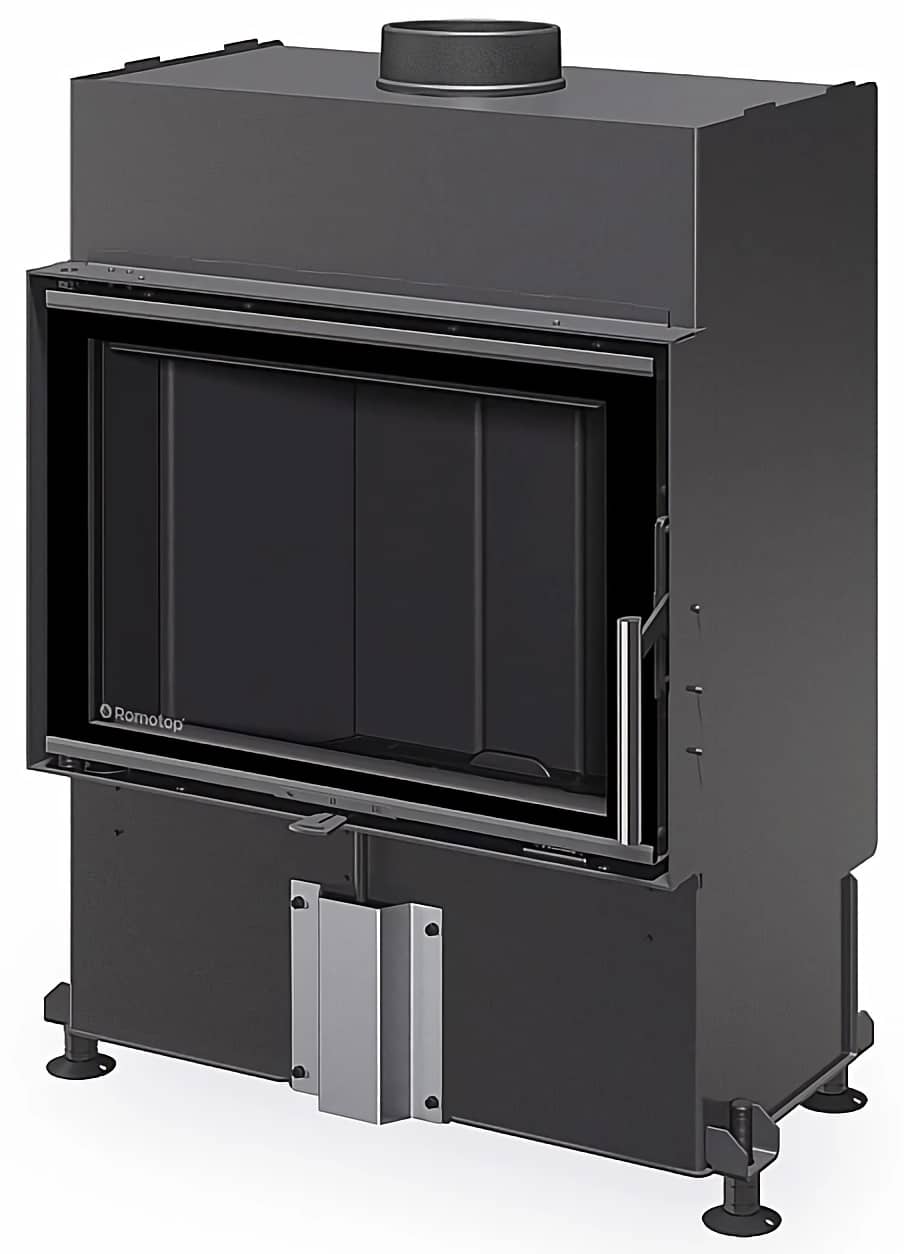 Камінна повітряна екологічна топка Romotop Heat 4G 59.44.16 з відкриттям дверцят вбік, прямим склом і футеруванням з темного матеріалу Igniton.