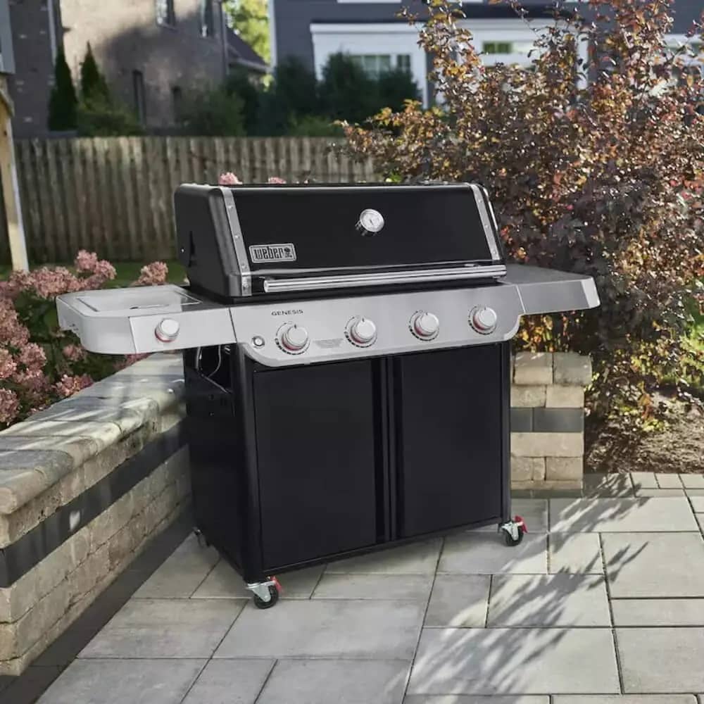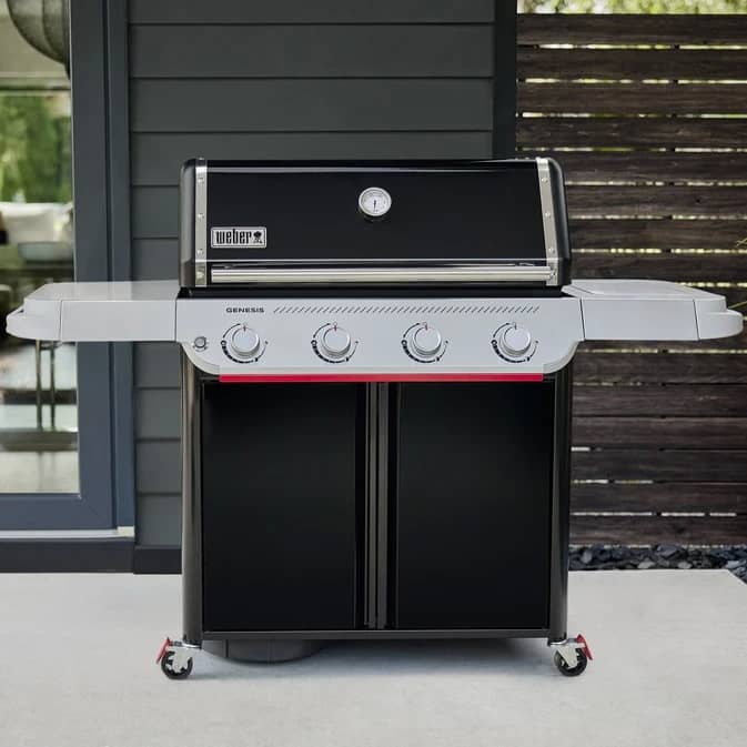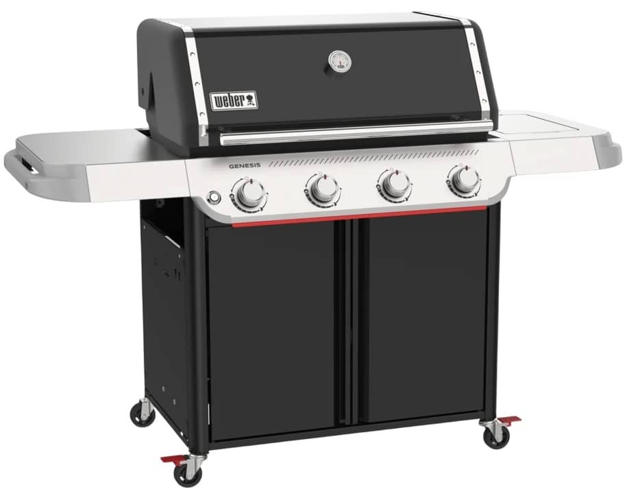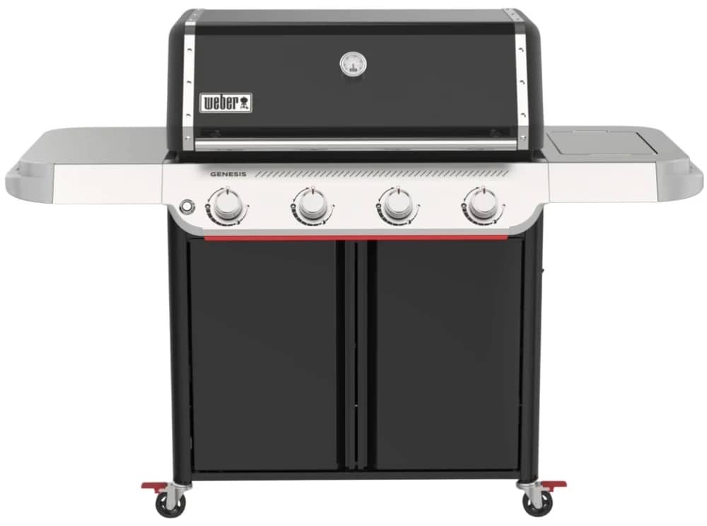 Газовий гриль Weber Genesis E-415 із 4-ма пальниками, боковими столиками, термометром, системою Weber Crafted і додатковою конфоркою.