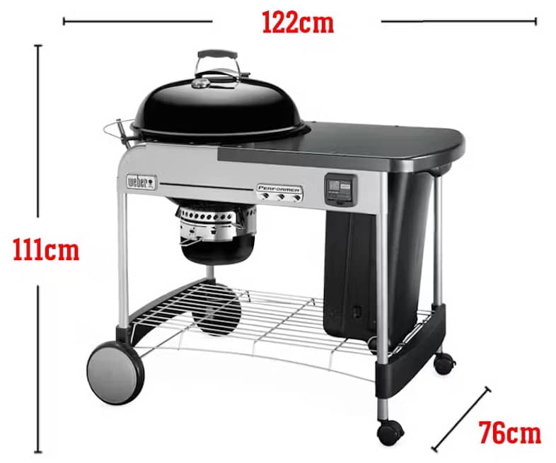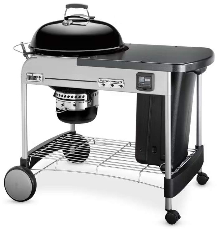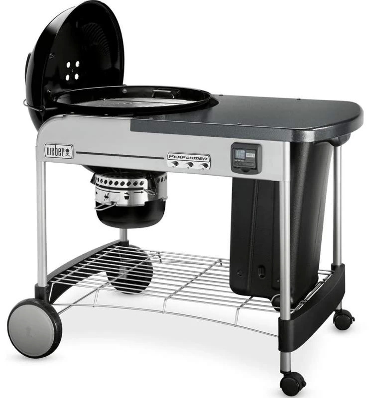 Вугільний гриль Weber Performer Premium GBS 57 см на візку із великою робочою поверхнею, системою GBS, контейнером для зберігання вугілля, термометром та знімним таймером.