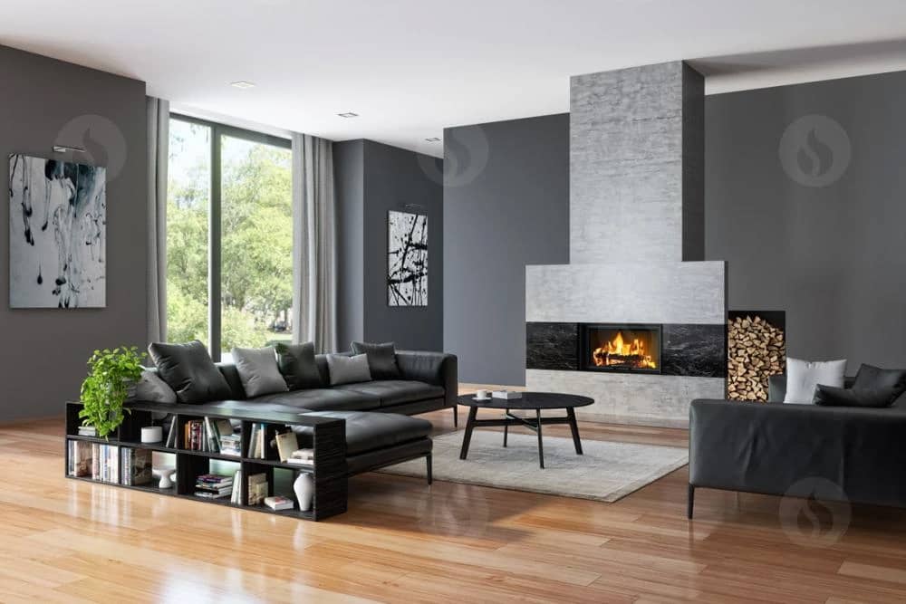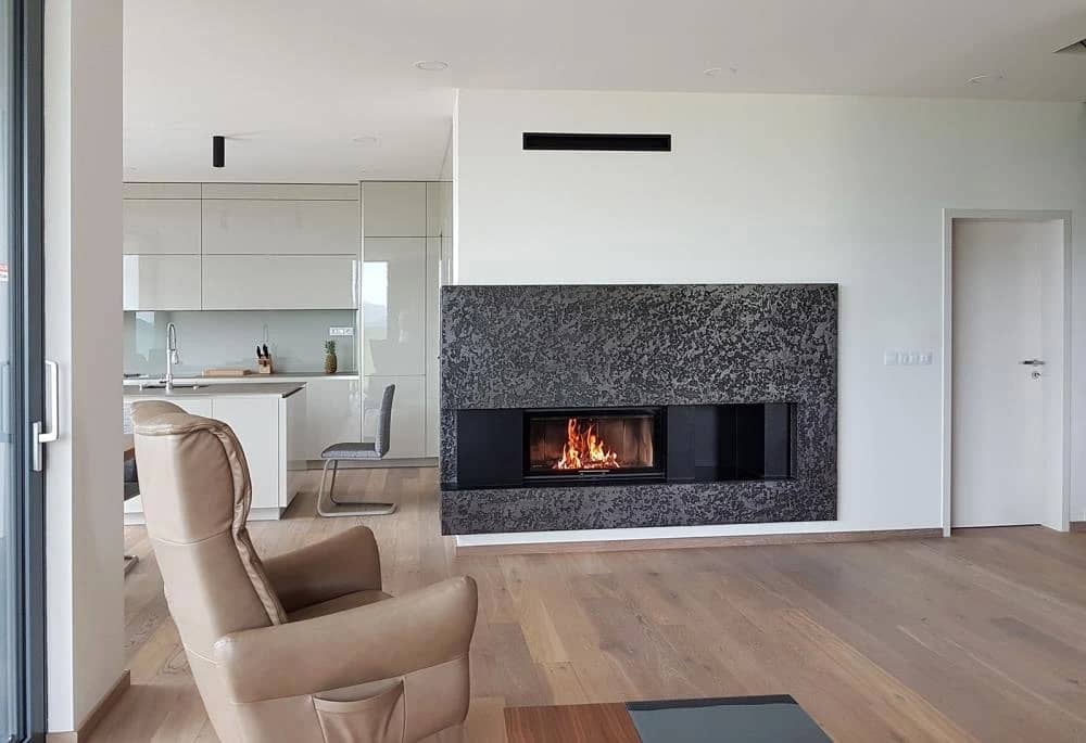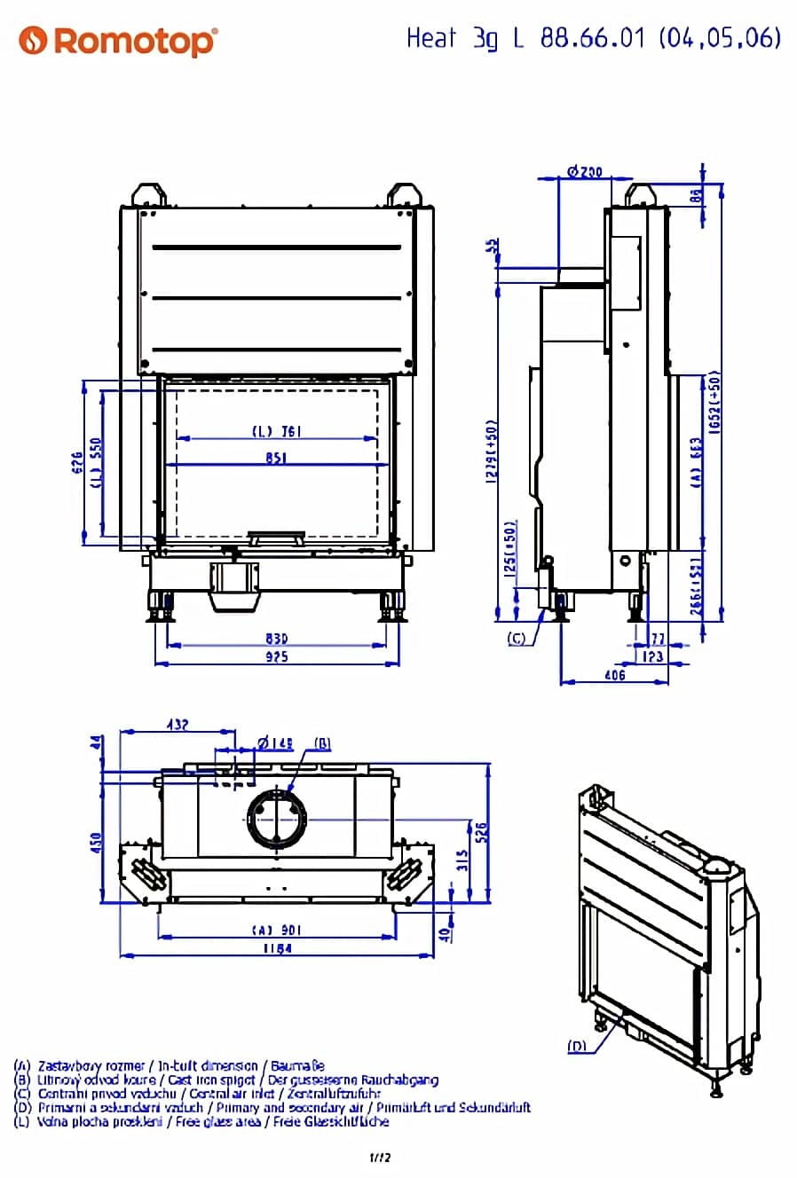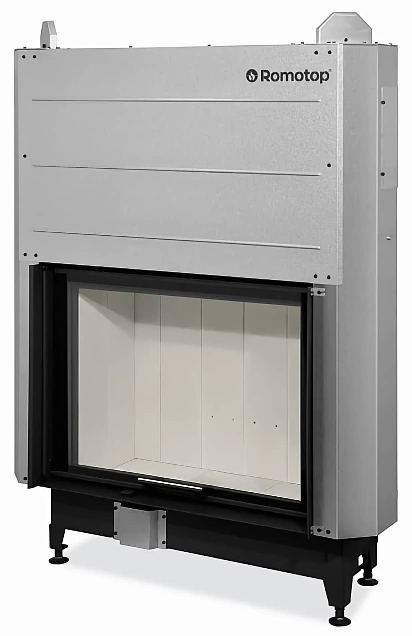 Камінна дров'яна топка Romotop Heat 3G L 88.66.04 з підйомними дверцятами, прямим склом і футеруванням зі світлого матеріалу Igniton.