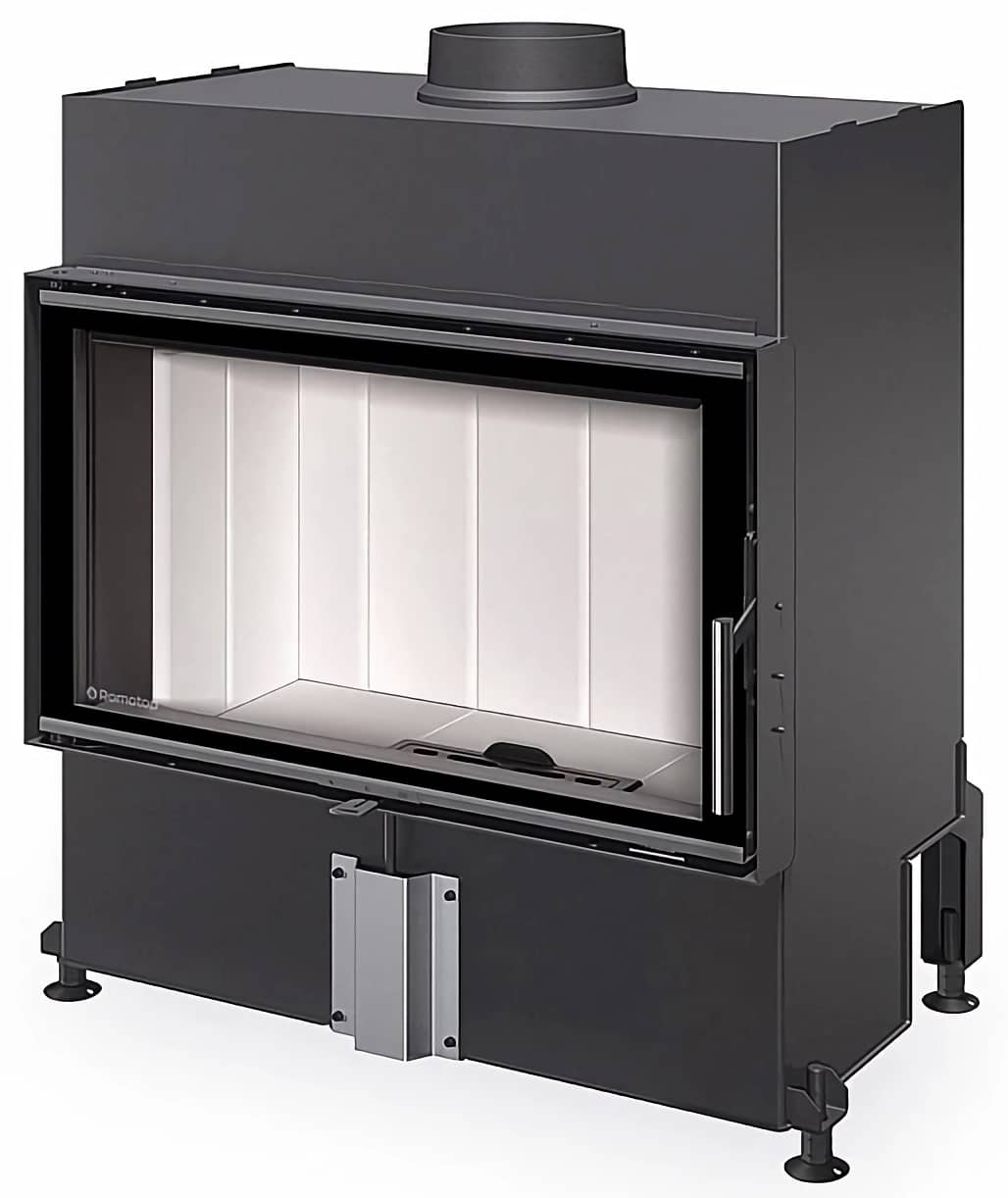 Камінна повітряна екологічна топка Romotop Heat 4G 80.50.04 з відкриттям дверцят вбік, прямим склом і футеруванням зі світлого матеріалу Igniton.