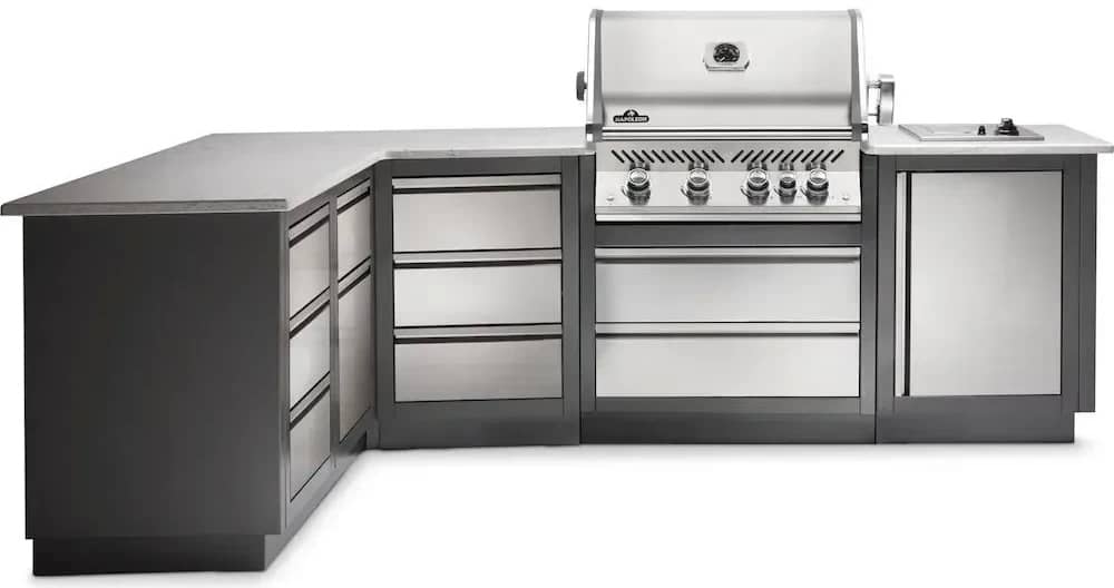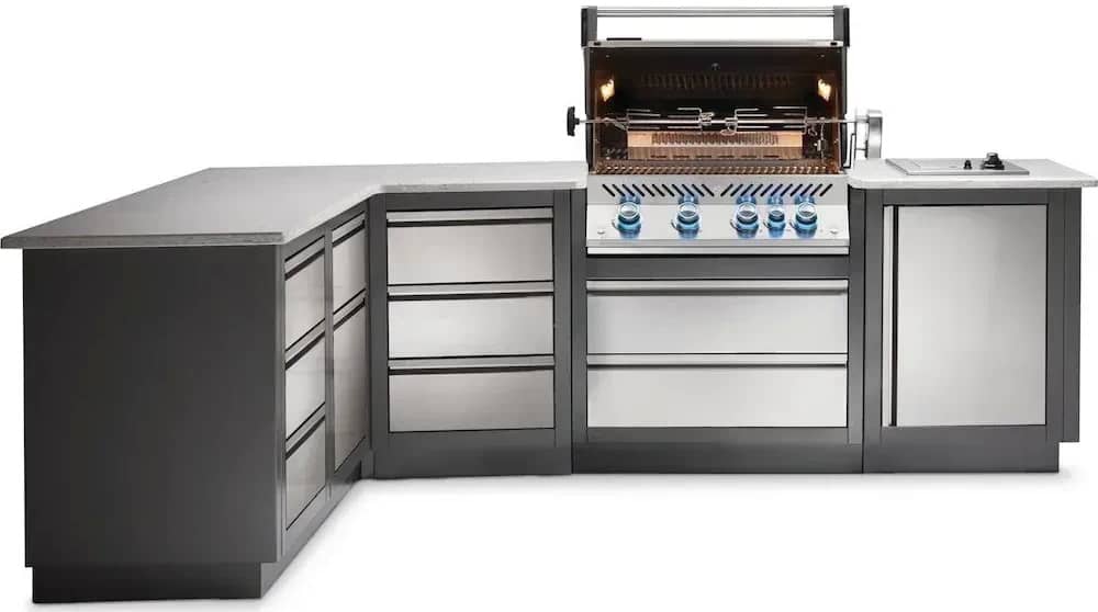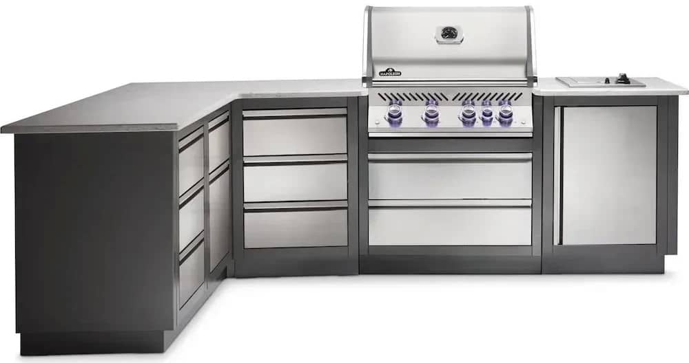 Вулична літня кухня Napoleon Oasis 300 із вбудованим газовим грилем Bipro 500 із нержавіючої сталі.
