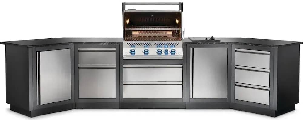 Вулична літня кухня Napoleon Oasis 400 із вбудованим газовим грилем Bipro 500 із нержавіючої сталі.