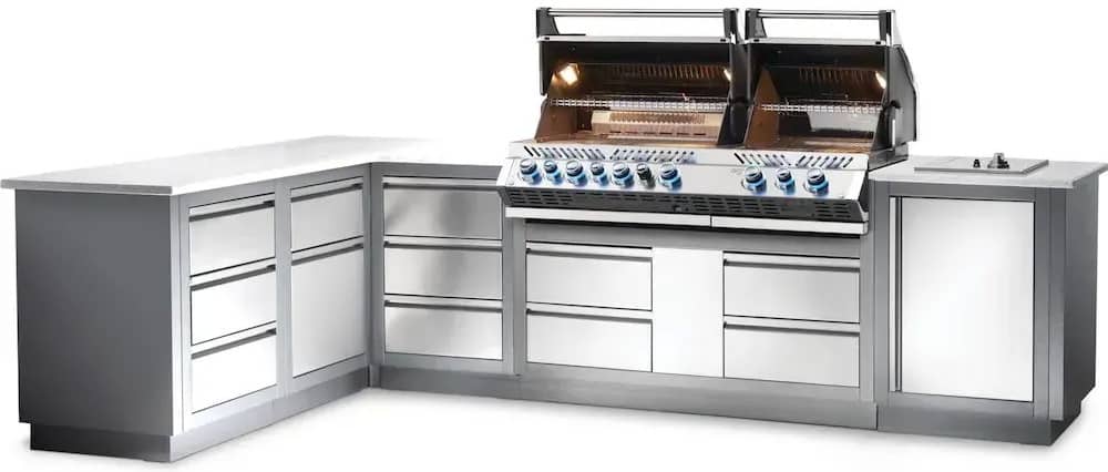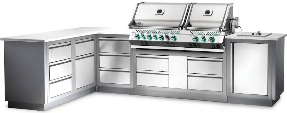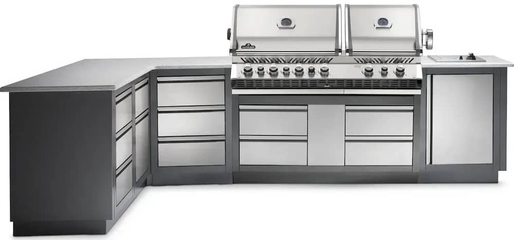 Вулична літня кухня Napoleon Oasis 300 із вбудованим газовим грилем Prestige Bipro 825 із нержавіючої сталі на 10 пальників.
