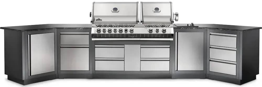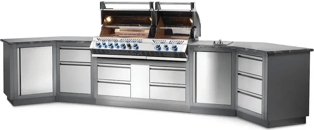 Вулична літня кухня Napoleon Oasis 400 із вбудованим газовим грилем Prestige Bipro 825 із нержавіючої сталі на 10 пальників.