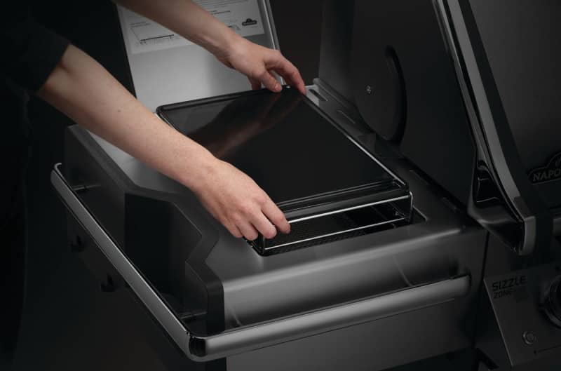 - Конструкція ідеально підходить для: риби, морепродуктів, овочів, стейків і делікатних продуктів, що потребують рівномірного прожарювання в інфрачервоній зоні грилів Napoleon Sizzle Zone™.