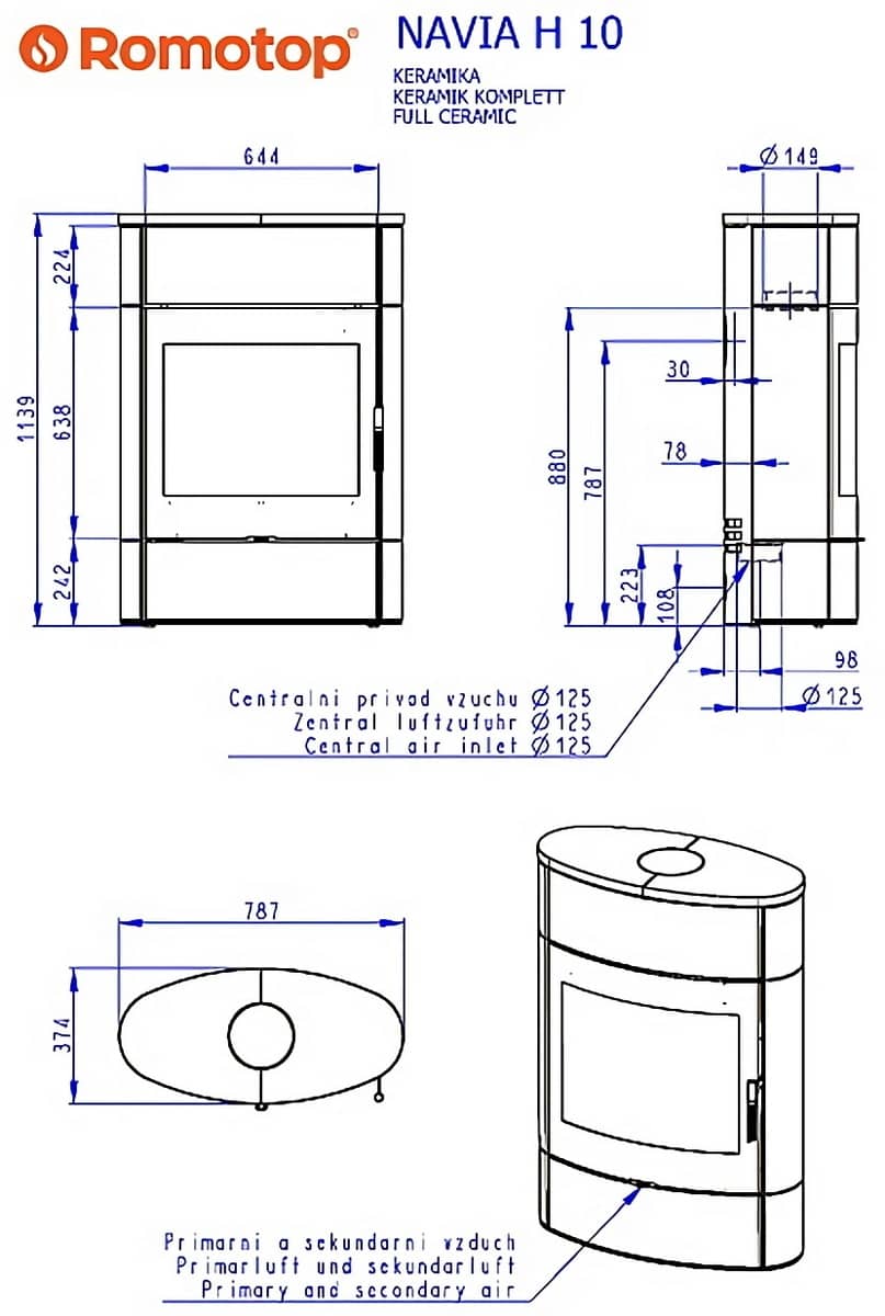 Піч на дровах Romotop Navia H 10 кераміка